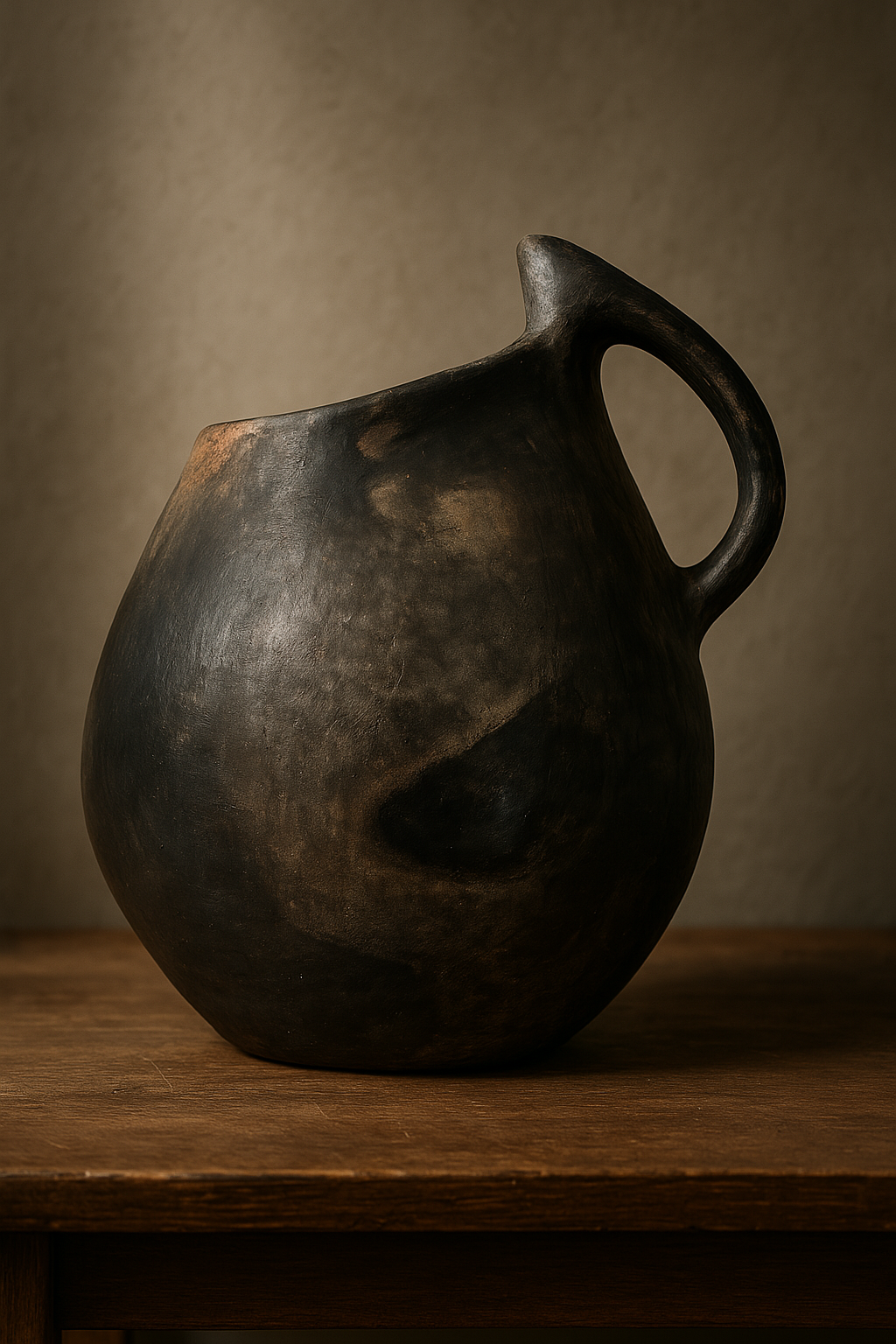 Avec ses lignes généreuses et son anse sculpturale, Radia se distingue comme une pièce de caractère, entre force et élégance. Ses nuances sombres mêlées de reflets cuivrés rappellent la roche polie par le temps. Une création artisanale unique qui impose sa présence tout en apportant chaleur et authenticité à votre intérieur.
